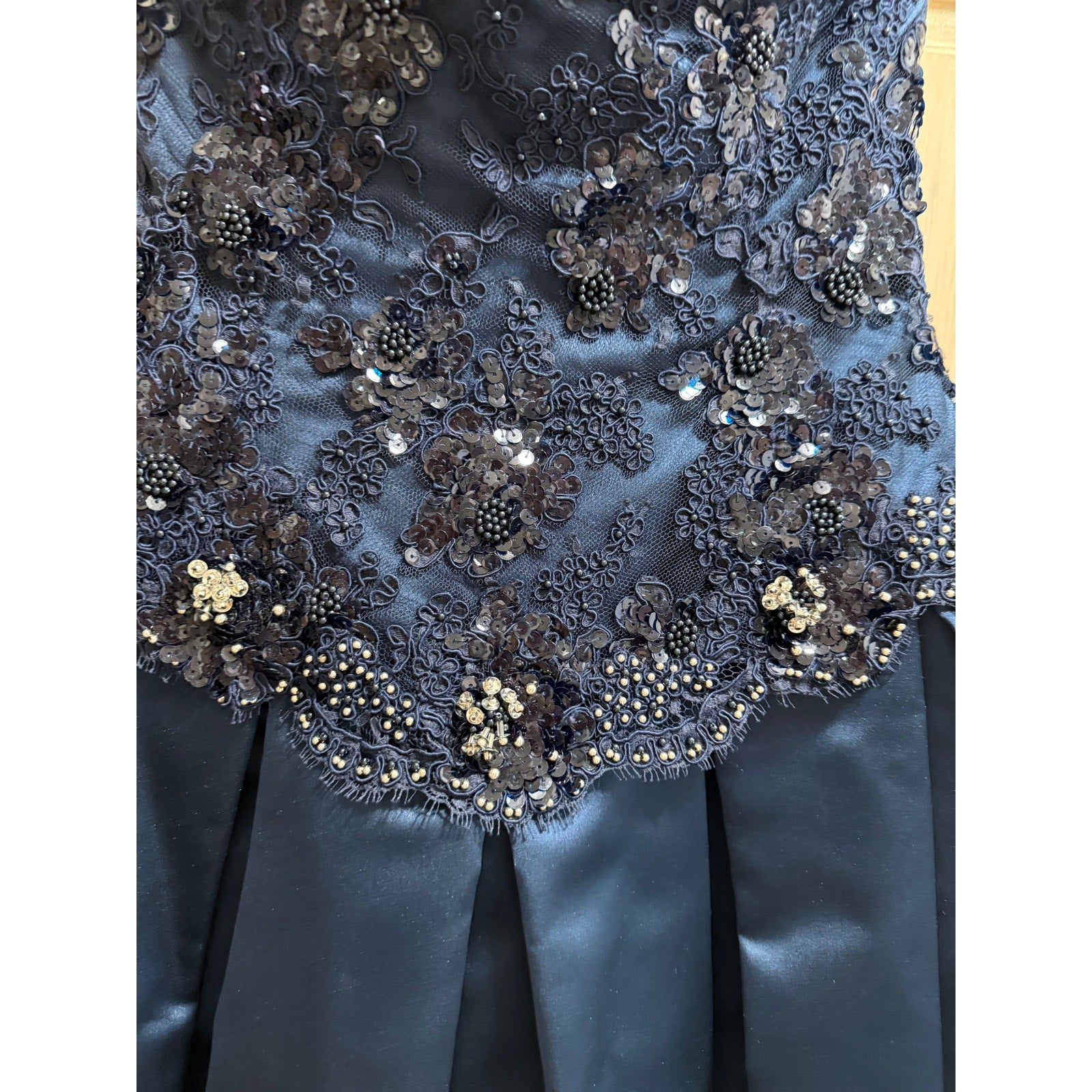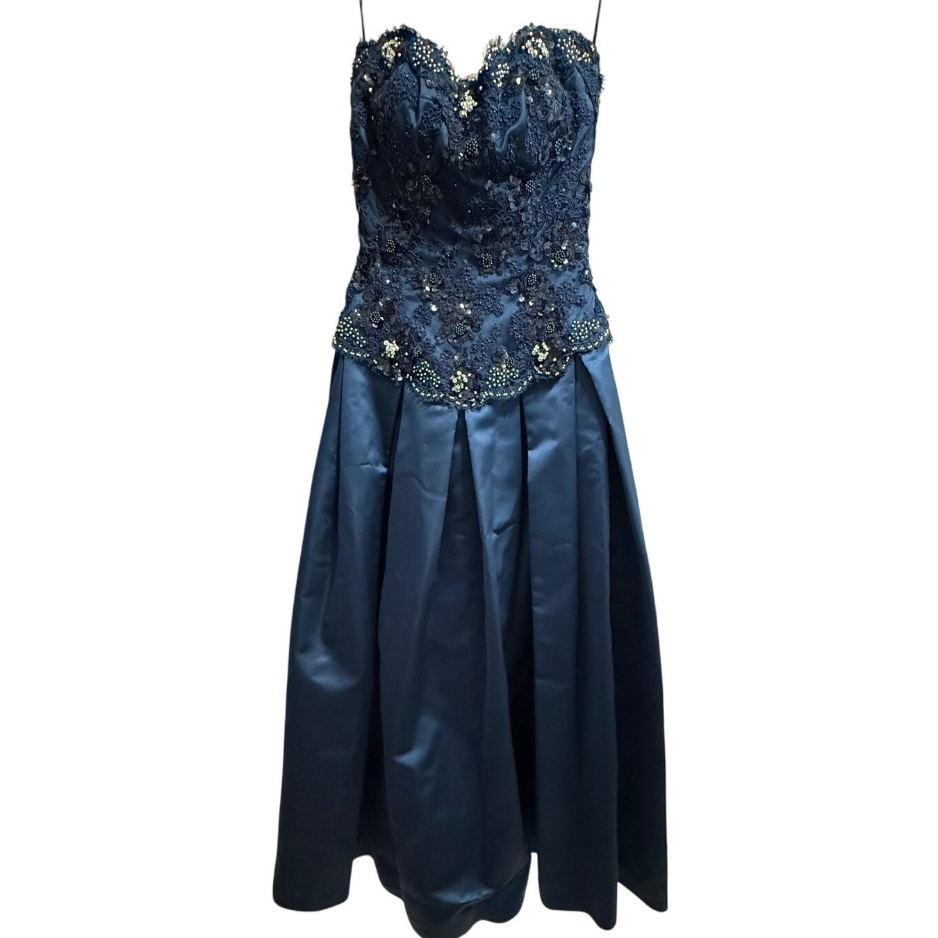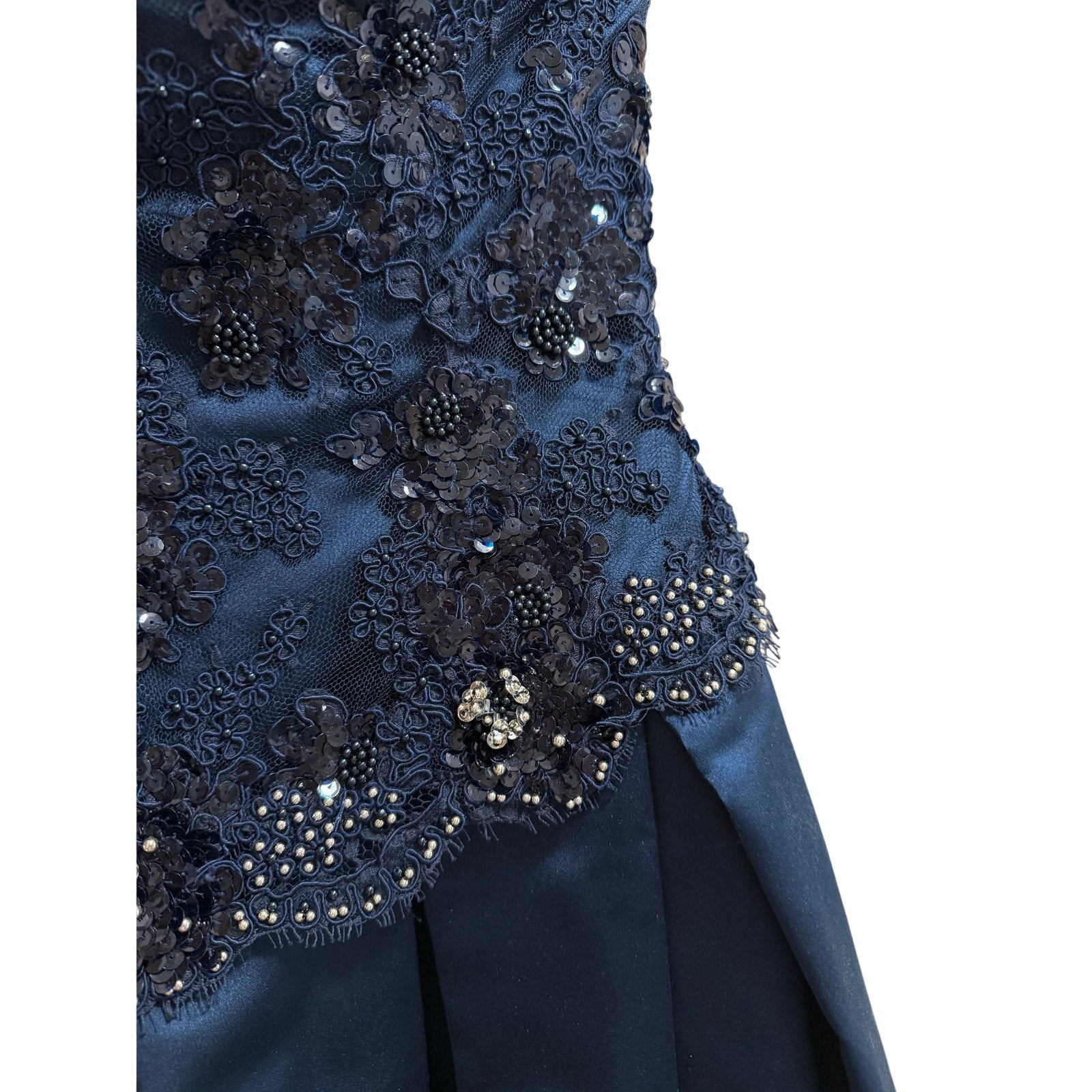Midnight Blue Strapless Gown - Beaded, Lace Sequined Bodice - Prom - Party Gown