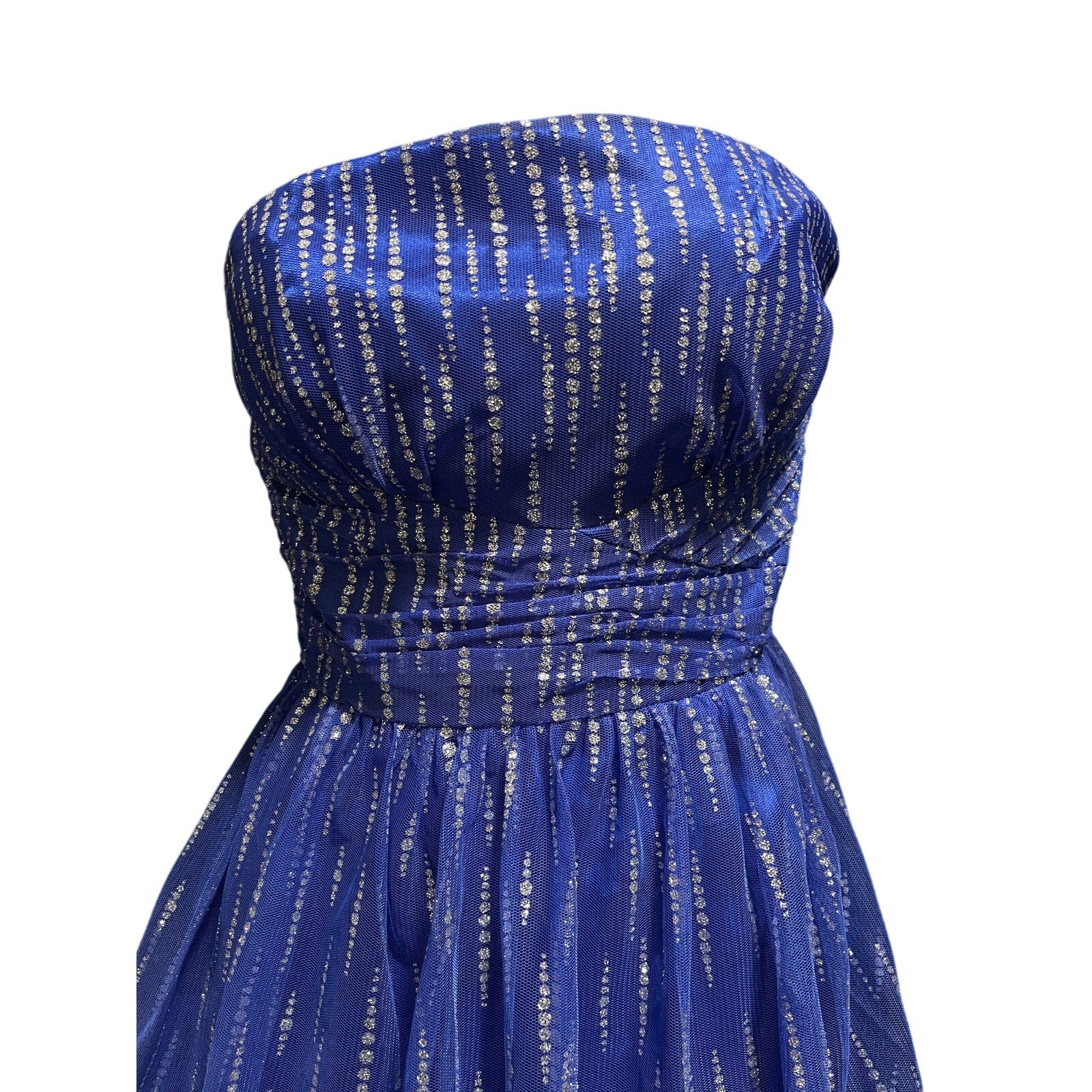 Morgan & Co Blue w/Silver Sequin Halter Dress - Size 3/4